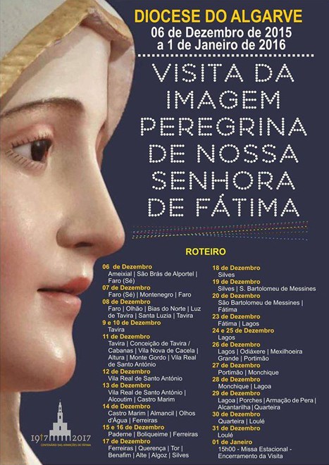 A imagem peregrina de Nossa Senhora de Fátima, que iniciou em maio deste ano uma peregrinação de um ano às dioceses portuguesas, chegou ao Algarve no dia 6 de dezembro vinda da vizinha Diocese de Beja. Chegou a Faro, no passado domingo, já de noite.